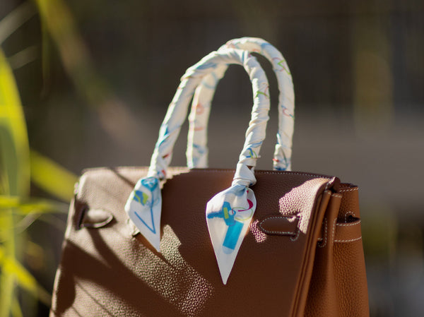 Carrie® Silk Twirls are crafted from 100% silk twill, twisting around your bag handles like a ribbon of color—adding a striking touch that elevates your everyday look.