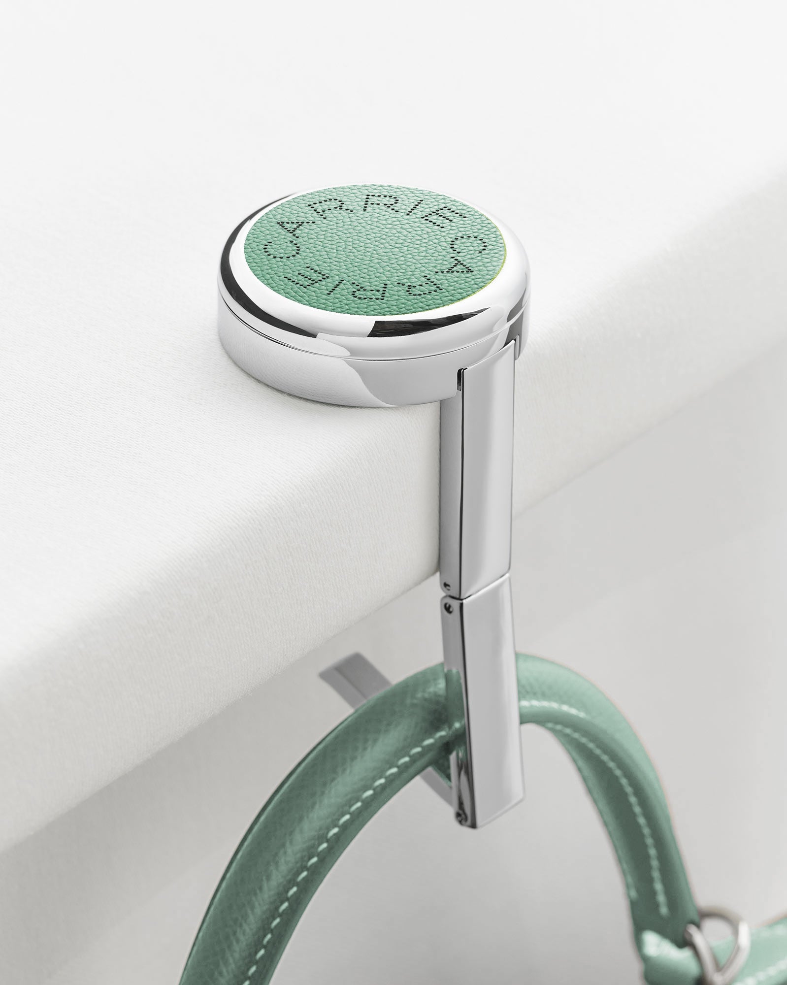 We've also incorporated additional anti-slip protection on the bottom part. The longer hook length allows it to be used on thicker tables, providing a unique feature for the Carrie hanger.